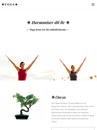 Dette design formidler den afslapende atmosfære som er typisk for en yoga- eller danse-studio. Den såkaldte parallax effekt gør din hjemmeside dynamisk.