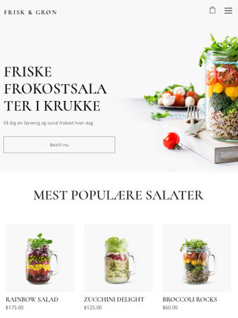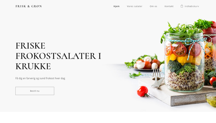 Start din madleveringsfirma med denne flotte skabelon! Med skabelonen er det nemt at sælge friske salater og anden sund mad. Bare uploade nogle fristende billeder, beskriv hvad der gør din mad unik og forbered dig på et stormløb af sultne kunder.