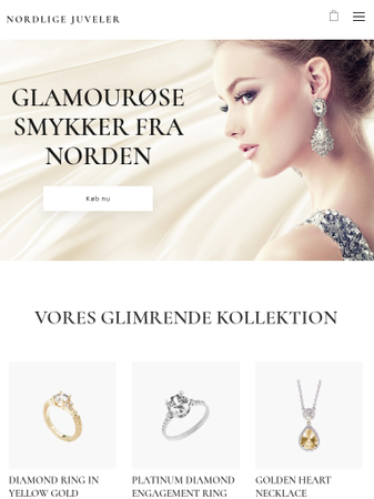 Start en online butik og sælg dine luksuriøse smykker. Denne sofistikerede skabelon er perfekt til at vise dine glimrende smykker. Tilføj beskrivelser og flotte billeder til dine produkter og begynd at sælge til dine kunder i dag!