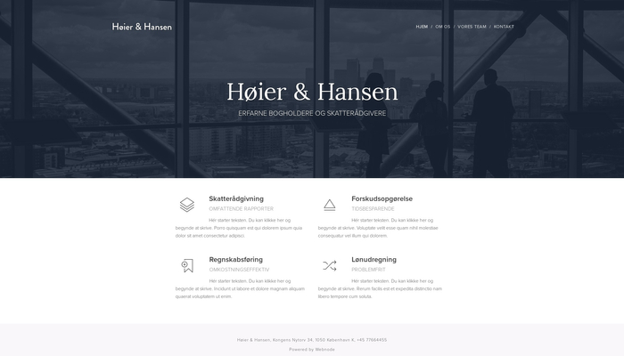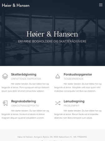 Målrettet skatterådgivere, bogholdere eller advokater er her en skabelon som kan hjælpe dig med præsentere en bred vifte af ydelser, og du kan med fordel benytte dig af det store udvalg af ikoner og piktogrammer.